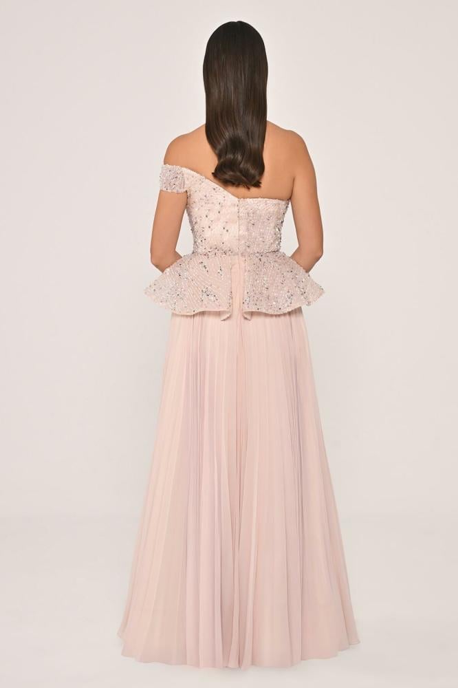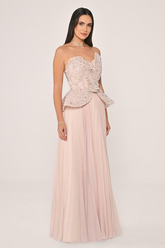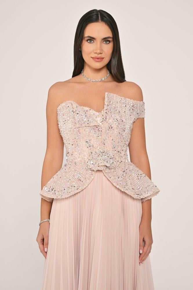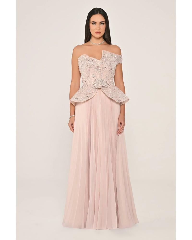 فستان بقماش الشيفون مطرز بالاحجار