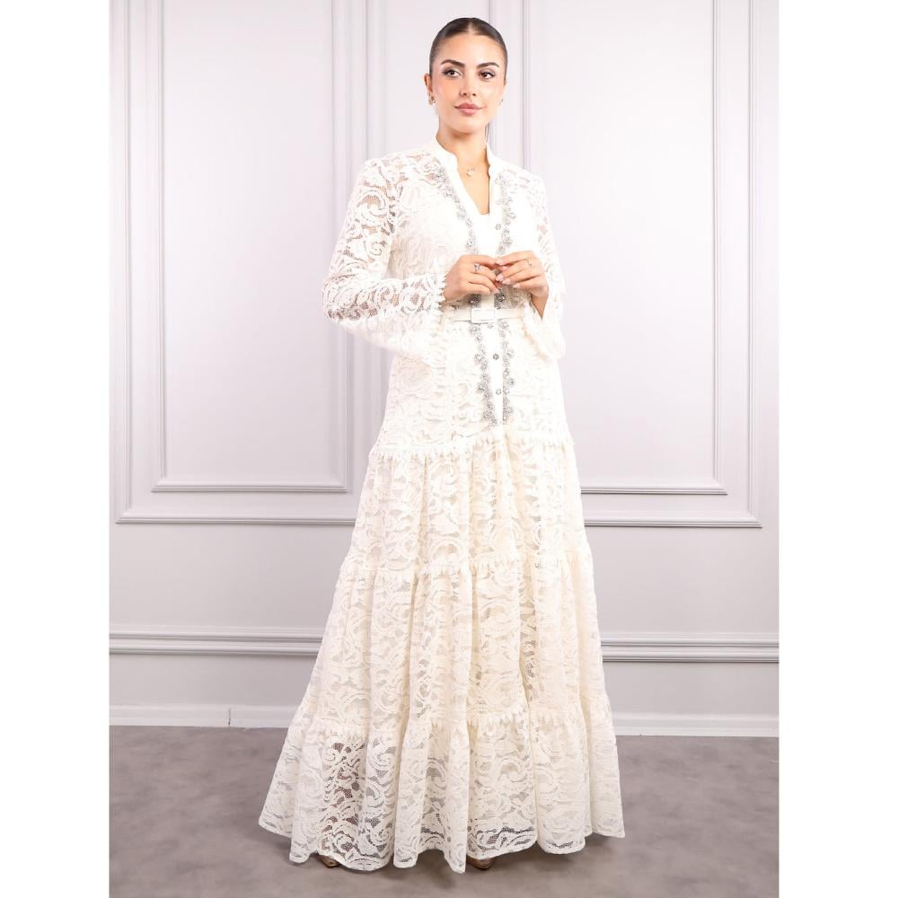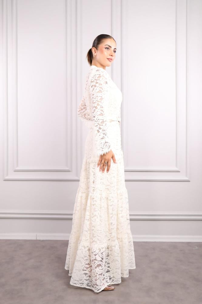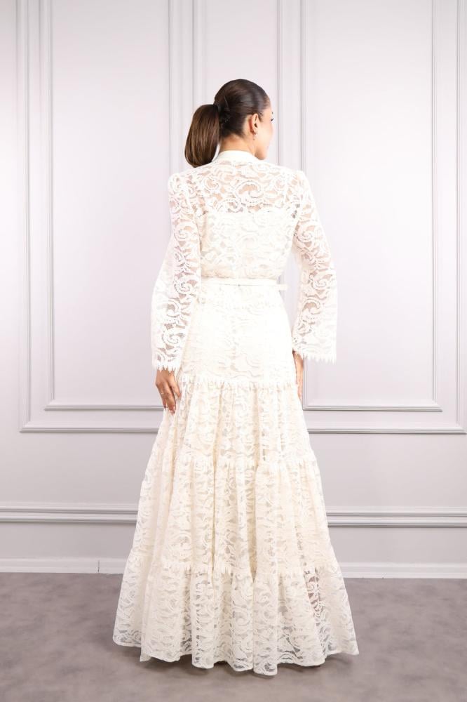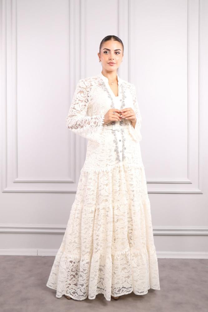 فستان دانتيل وحزام على الخصر