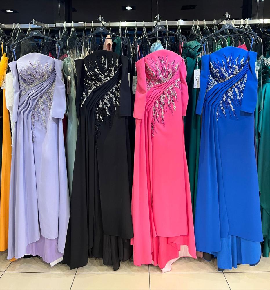 فستان سهرة هاند ميد بقماش الكريب مطرز بالخرز والاحجار