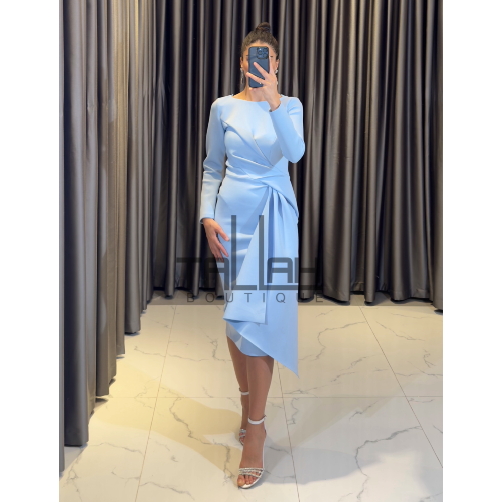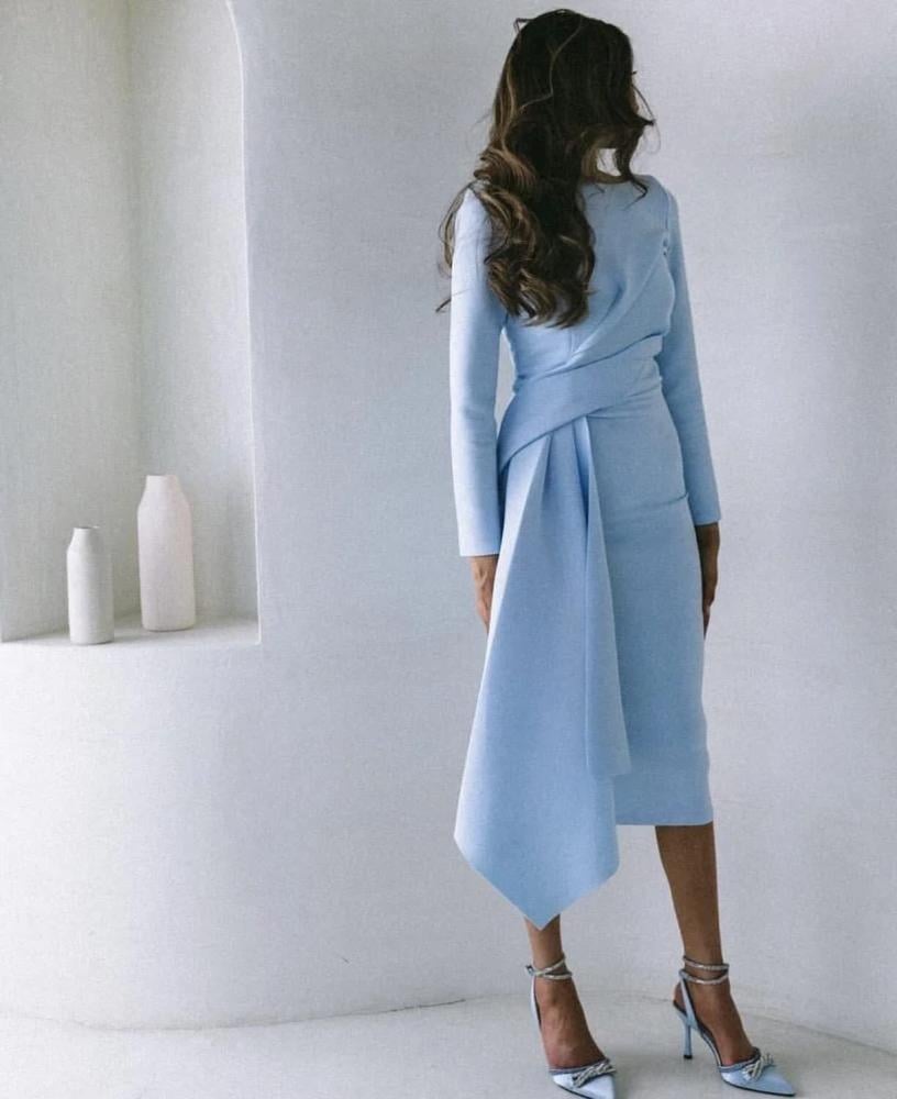 • فستان خامة القماش سكوبا مزين بالكريستال مع حزام