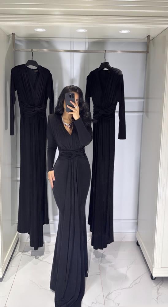 فستان اسود بذيل طويل