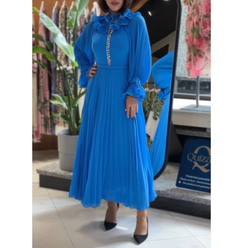• فستان خامة القماش سكوبا مزين بالكريستال مع حزام